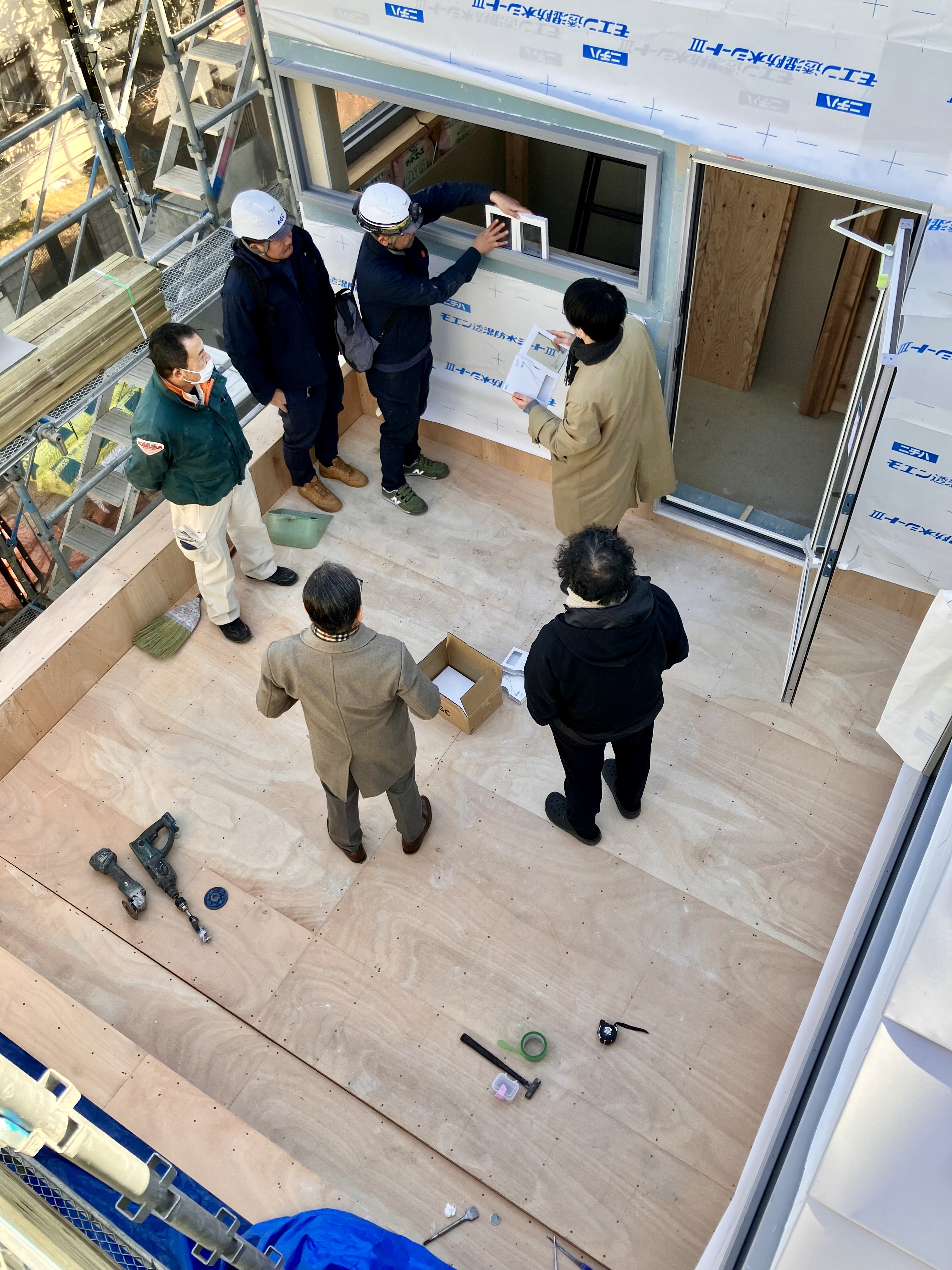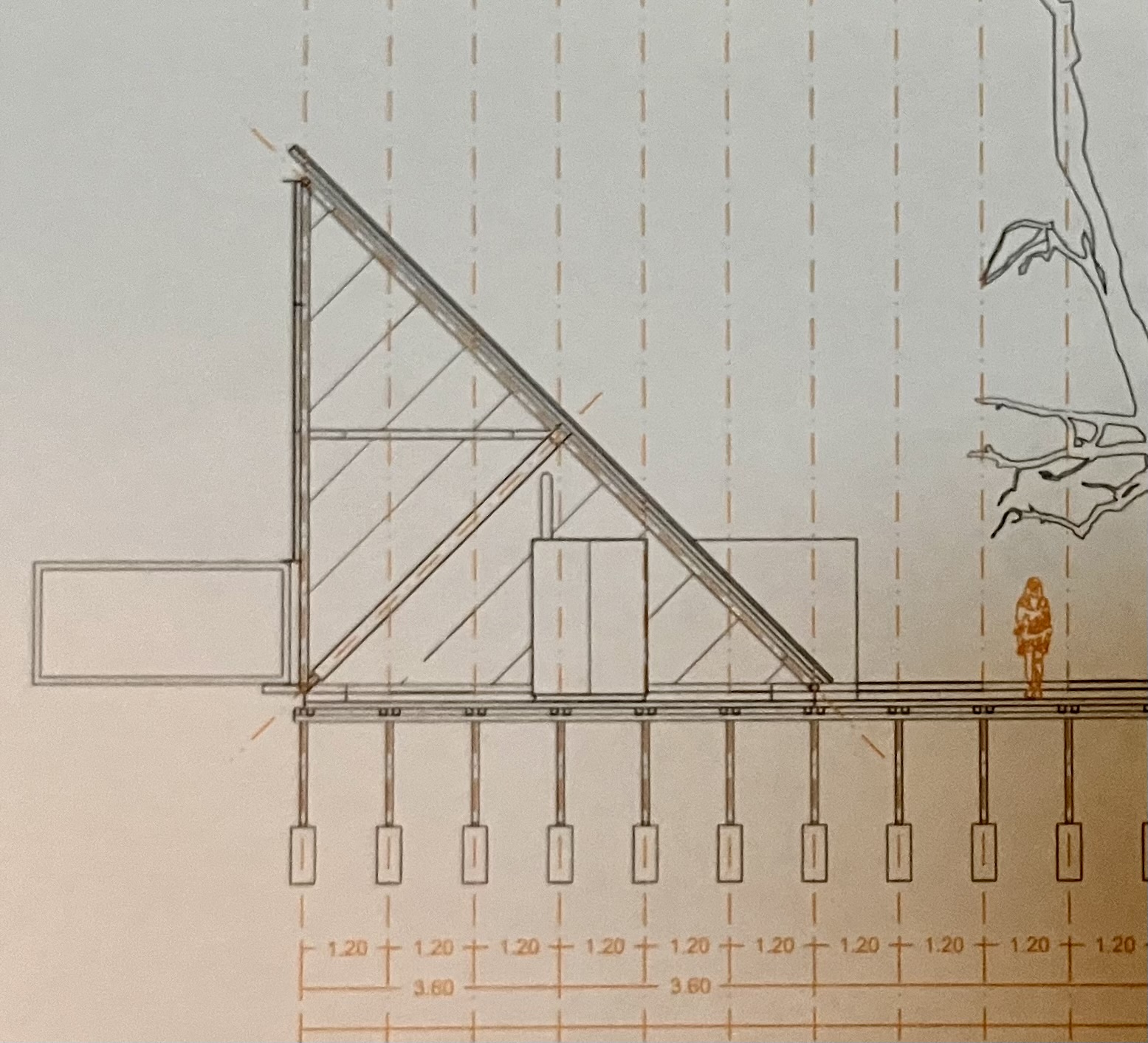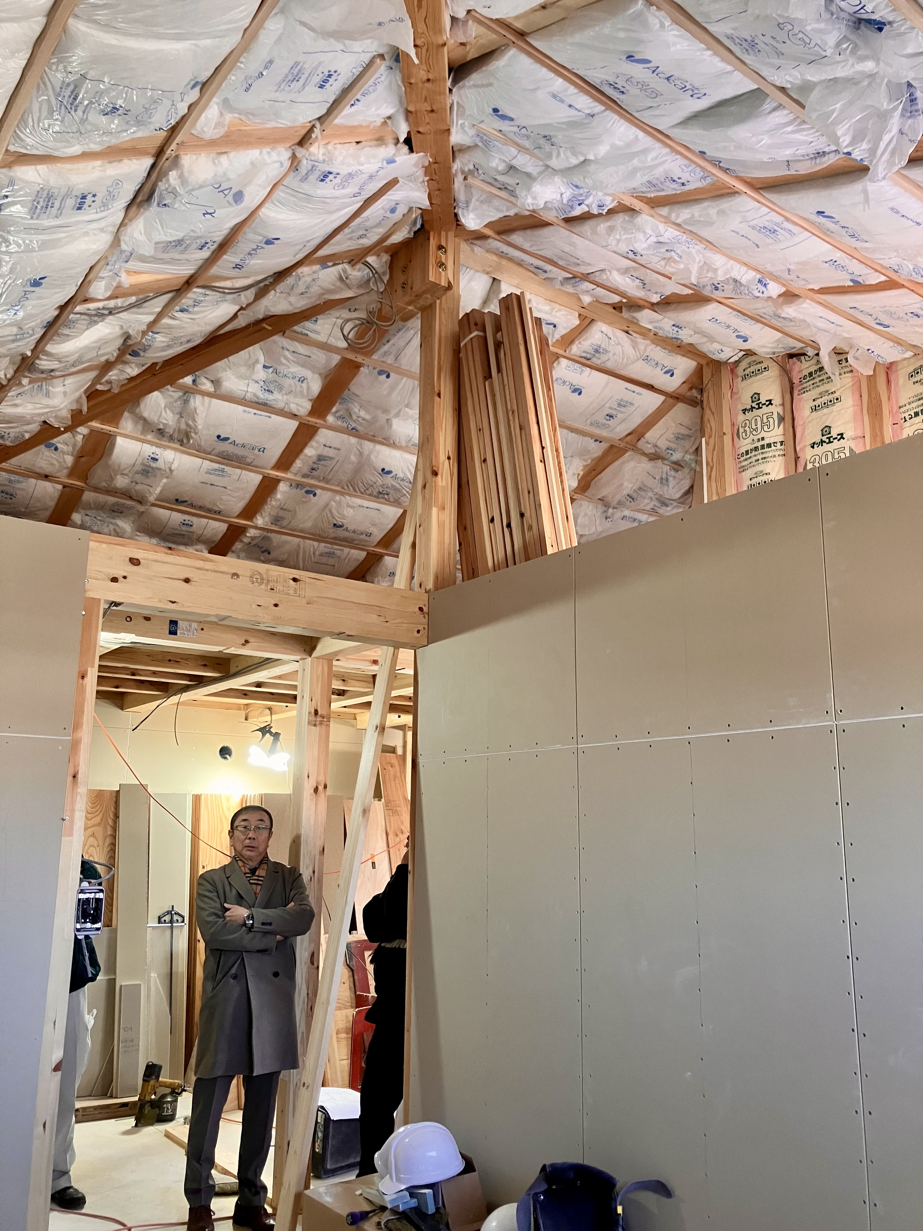 去年チリに行く頃着工した小さなオフィスの現場。大工さんが沢山入ってくれてオンスケジュール。ありがとうございます。1階は玄関倉庫でRC 。2階はオフィスで心柱を建て、3階まで伸ばす。3階は小部屋が集まるが、梁上はガラス張りにして屋根下空間を大きく見せる。When I visited Chile last year, construction began on a small office site. Many carpenters are working on schedule. Thank you very much. The first floor is a reinforced concrete structure with an entrance hall and storage space. The second floor is an office, with a central pillar extending to the third floor. The third floor is crowded with small rooms, but the space under the roof appears larger by using glass above the beams.