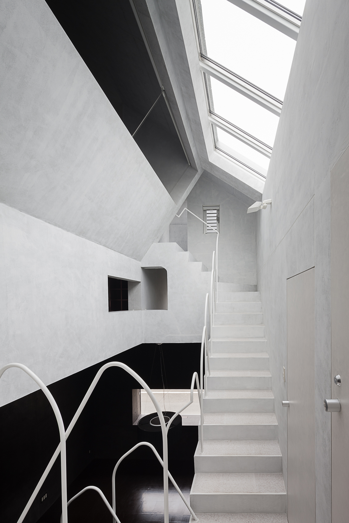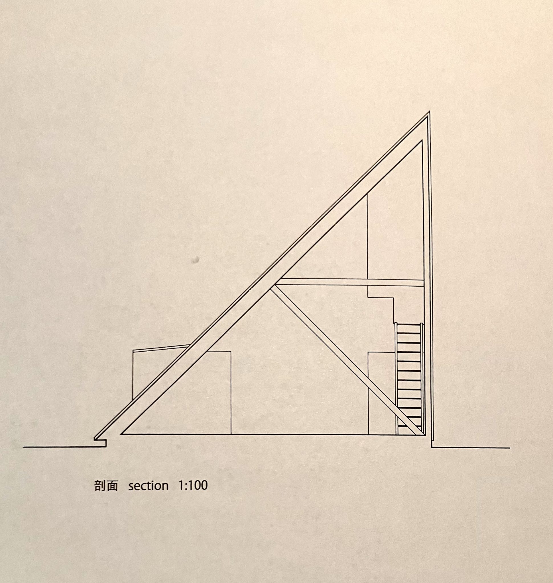 篠原一男の三角形を真似たヴァレリオ•オルジャッティ、スミルハン•ラディッチの三角形。支えの斜め柱に注目Valerio Olgiati and Smiljan Radić's triangle, which imitates Kazuo Shinohara's triangle. Note the diagonal support columns.