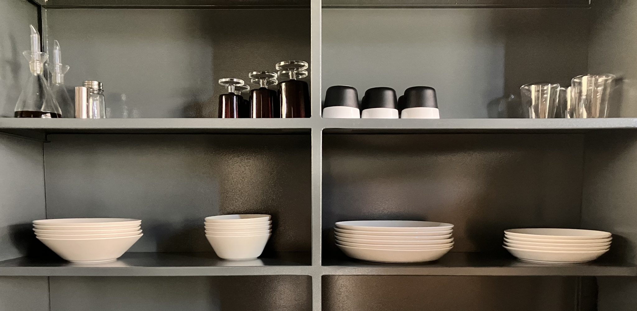 ワイングラスはリュミナルク🇫🇷、コップはエバソロ🇩🇰、食器はイッタラ🇫🇮、 洗面器はロカ🇪🇸、ポットはステルトン🇩🇰、オーブン、食洗機、洗濯機はボッシュ🇩🇪