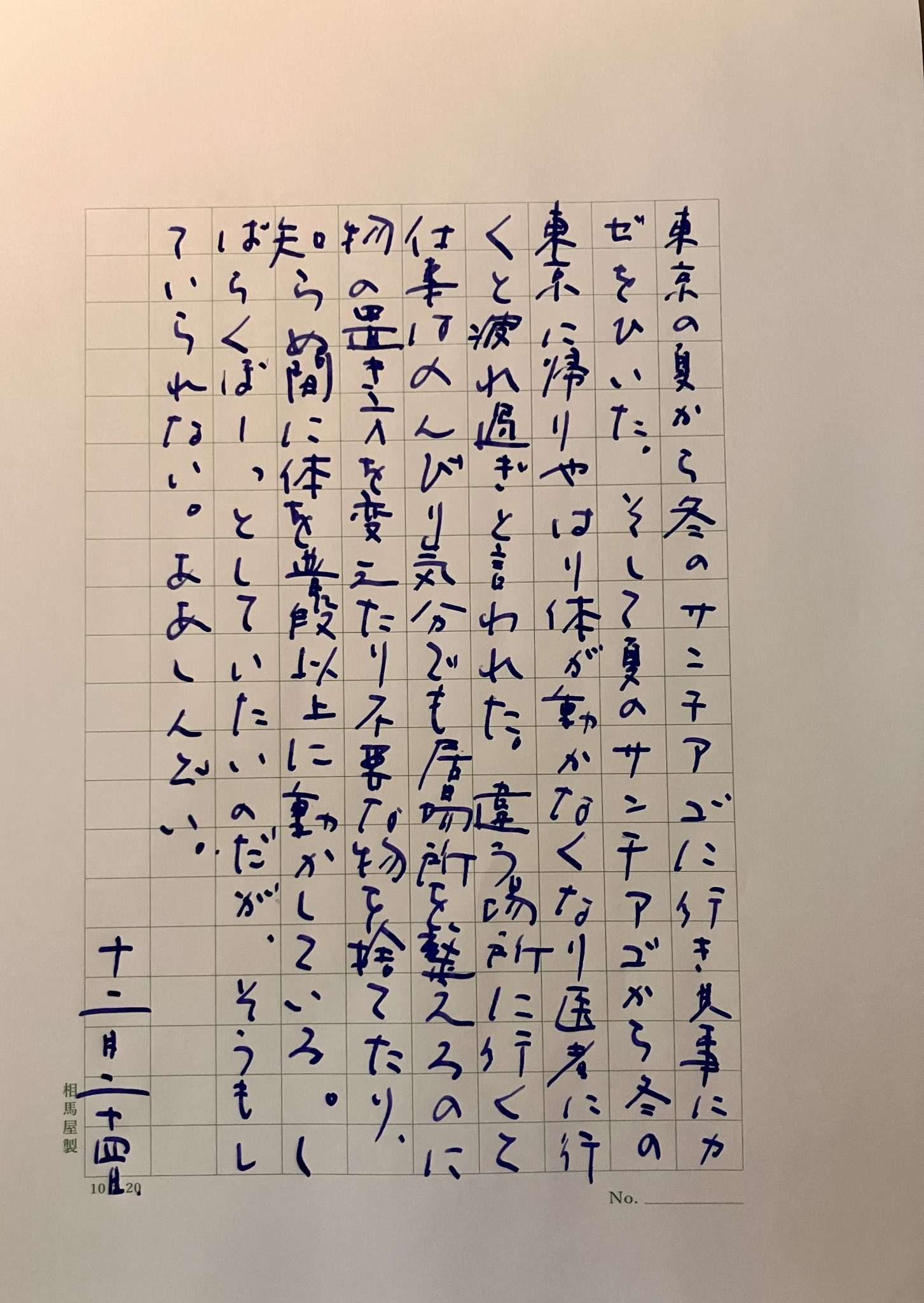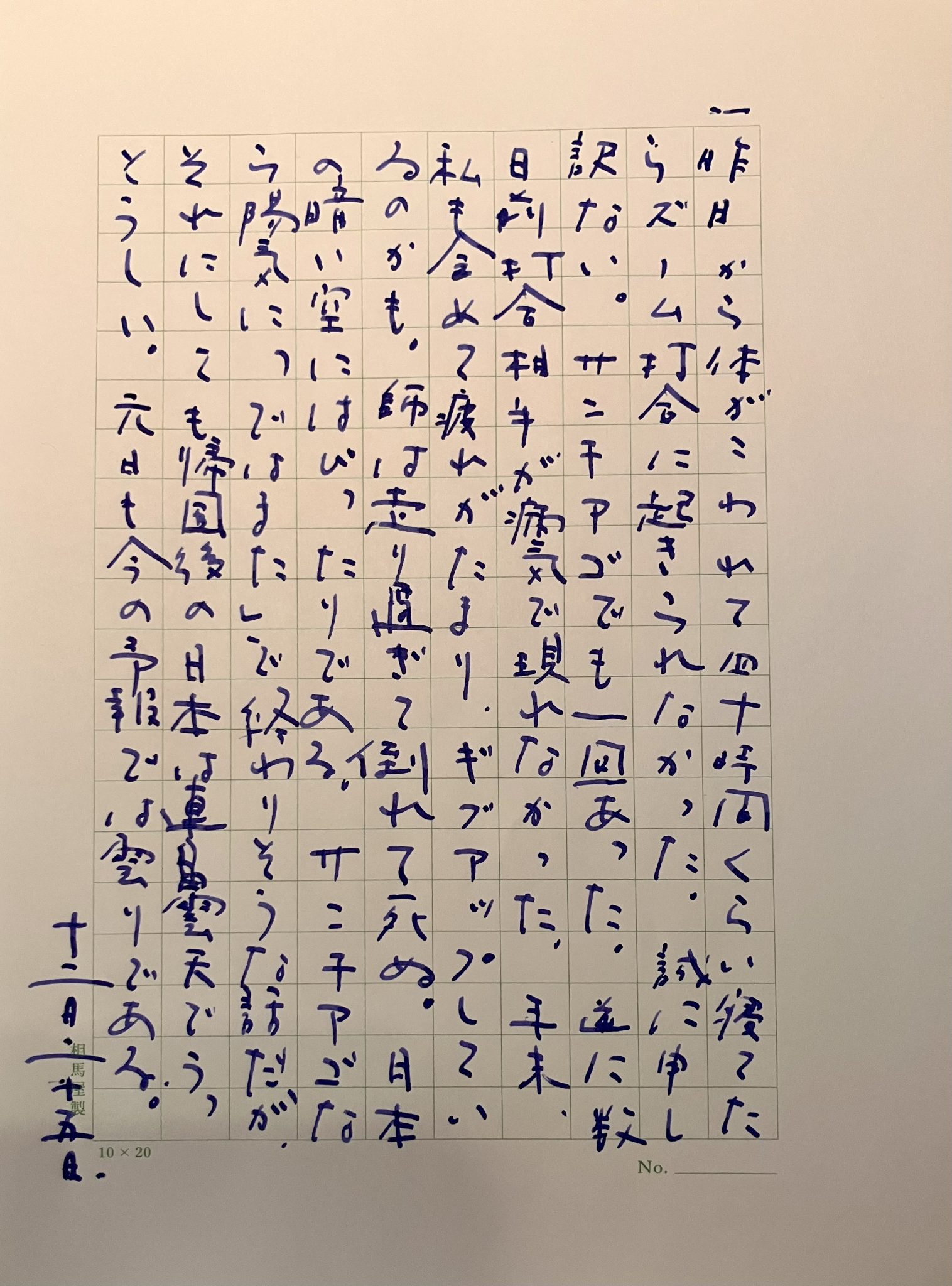 Quisiera agradecer a todos en Chile por su hospitalidad. Especialmente a profesora Paula Velasco, quien me permitió venir a Chile e impartir dos conferencias y una clase práctica. Estoy profundamente agradecida. También quiero agradecer a mis profesores, Diego Grass, Alberto Moletto, Alejandro Beals, Francisco Quintana, Stephannie Fell y Max Núñez, por invitarme a sus maravillosas casas; la comida estuvo deliciosa. Alberto y Max también me mostraron sus oficinas, lo cual fue muy informativo. Stephannie me invitó a una conferencia y tuvimos una charla maravillosa. También quiero agradecer a Pedro Alonso, quien me llevó al desierto de Atacama y me prestó su oficina. Fue una experiencia maravillosa. El estudiante de doctorado Sebastián Cárcamo asistió a dos clases y habló muy positivamente. Su apoyo en diversos aspectos de mi vida y sus visitas a otros campus fueron invaluables. Mi compañero de doctorado Gianfranco también se sentó en primera fila en cada una de mis clases, me presentó a varios artistas y arquitectos, y me llevó a dos conciertos. Mi mundo se ha expandido. Gracias. Gracias a Ignacio Alejandro por ayudarme con mis clases. Lamento haberte hecho perder el tiempo no solo con el apoyo en clase, sino también con el soporte vital, DHL, la Secretaría de la Ciudad, Correos, etc. No podría sobrevivir sin ti. A mi compañero de estudio, Marcelo Cox. Nos divertimos mucho co-enseñando. Mientras estuve en Japón, creamos temas de estudio juntos por Zoom, enseñamos a los estudiantes y hoy me llevaste al aeropuerto. El próximo semestre volveremos a co-enseñar por Zoom. Espero con ansias trabajar contigo de nuevo. A Carolina Bustos, quien me enseñó español. Gracias, pero no estoy progresando mucho. Seguiré estudiando. Por favor, enséñame de nuevo cuando regreses el año que viene. Y gracias a todos los estudiantes que tomaron mis clases. A veces me molestó un su falta de unpuntualidad, pero estoy satisfecho con la calidad de sus informes. El verdadero desafío para los estudiantes de estudio de desieno apenas comienza, así que trabajemos duro juntos y aspiremos a graduarnos. Espero ver un trabajo excelente. Fuera de la escuela, quiero agradecer a Fukushima-san, Joaquina y a la familia de Pepe por invitarme a Chiloé. No podría haber tenido una experiencia así sola. Gracias al profesor Carlos de la Universidad del Biobío por llevarnos a lugares que nunca hubiéramos visto en Concepción durante dos días. Y gracias a Ivón Bravo por invitarme a su casa de playa para ver su colección de obras. Gracias a Smiljan Radic y Marcela Correa por dejarme usar su maravillosa casa. Es fácil trabajar allí, lo suficientemente espaciosa como para recibir invitados, y no tengo ninguna queja. Tengo muchas ganas de ver a Max e Iván, que vendrán a Japón el año que viene. También tengo muchas ganas de ver a Paula y Alberto, que planean venir el año siguiente. Pero antes, iré a Chile a principios de julio para presentar los exámenes de mi estudio actual e impartir un programa similar al de este año. Espero verlos a todos de nuevo. チリの皆様大変お世話になりました。特にPaula Velasco、あなたのおかげでチリに来られて、二つの座学とスタジオの授業をできることになりました。深く感謝してます。 素敵な家にご招待くださった教授の皆様、Diego Grass, Alberto Moletto、Alejandro Beals、Francisco Quintana、Stephannie Fell, Max Nunez, ありがとうご飯はとても美味しかった。Alberto とMaxは事務所も見せてもらいとても参考になりました。Stephannieにはコンフェレンスに呼んでいただき楽しいトークができました。また私をアタカマ砂漠に連れて行ってくれて、オフィスを貸してくれたPedro Alonso、ありがとうとてもいい経験でした。 PhdスチューデントのSebastian Carcamoは僕の授業を二つもとってくれてポジティブに授業で発言してくれました。加えてさまざまな生活のサポートや他のキャンパスを案内してくれたことはかけがえのないものです。同じくPhd スチューデントのGianfrancoも私の授業を最前列で毎回受け、私を様々アーティストや建築家に紹介してくれ、加えて二つのコンサートに連れて行ってくれました。世界が広がりました。ありがとう。 私の授業のアシスタントをしてくれたIgnacio Alejandro ありがとう。授業サポートのみならず、生活サポート、DHL、Cityregistry,Correos,などなど色々引き摺り回してごめんなさい。あなたがいなければ生活不能でした。 私のスタジオのパートナーMarcelo Cox。楽しい共同授業でした。日本にいる時からズームでスタジオトピックを一緒に作り、学生を教え、そして今日は空港まで送ってくれて、来学期はズームでまた共同指導です。よろしうお願いします。 私にスペイン語を教えてくれたCarolina Bustos。ありがとう、しかし全く上達しませんね。引き続き勉強します。来年戻ってきたらまた教えてください。 そして私の授業をとってくれたすべての学生ありがとう。あなたたちの時間のルーズさには少々頭に来ることもありましたが、レポートの質の高さは満足いくものでした。スタジオの学生はまだこれからが本番、一緒に卒業を目指して頑張りましょう。いい作品を期待してます。 学外では私をチロエに招いてくれた福島さんホアキナ、Pepe家族本当にありがとう。あんな経験は一人では不可能ですね。コンセプシオンで2日間私たちを絶対に見られないような場所に案内してくれたビオビオ大学のCarlos先生ありがとう。そしてあなたのビーチハウスに招い