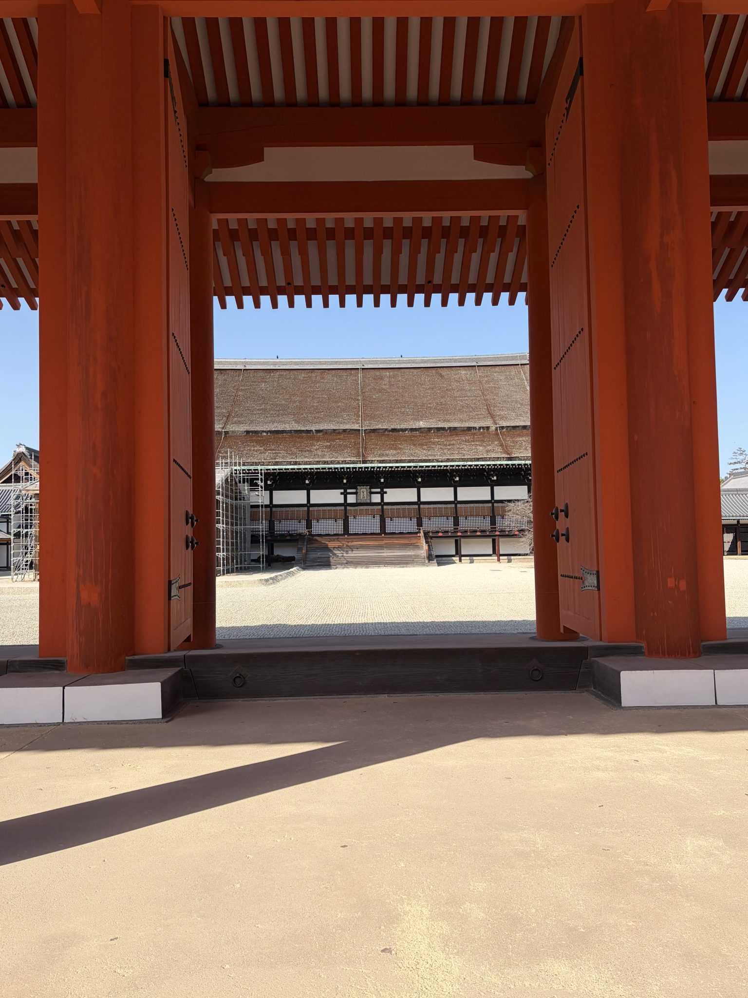 京都に来たのは紫宸殿が見たかったから。さすがの壮麗さに感動。Vine a Kioto para ver el Salón Shishinden. Me impresionó mucho su grandeza