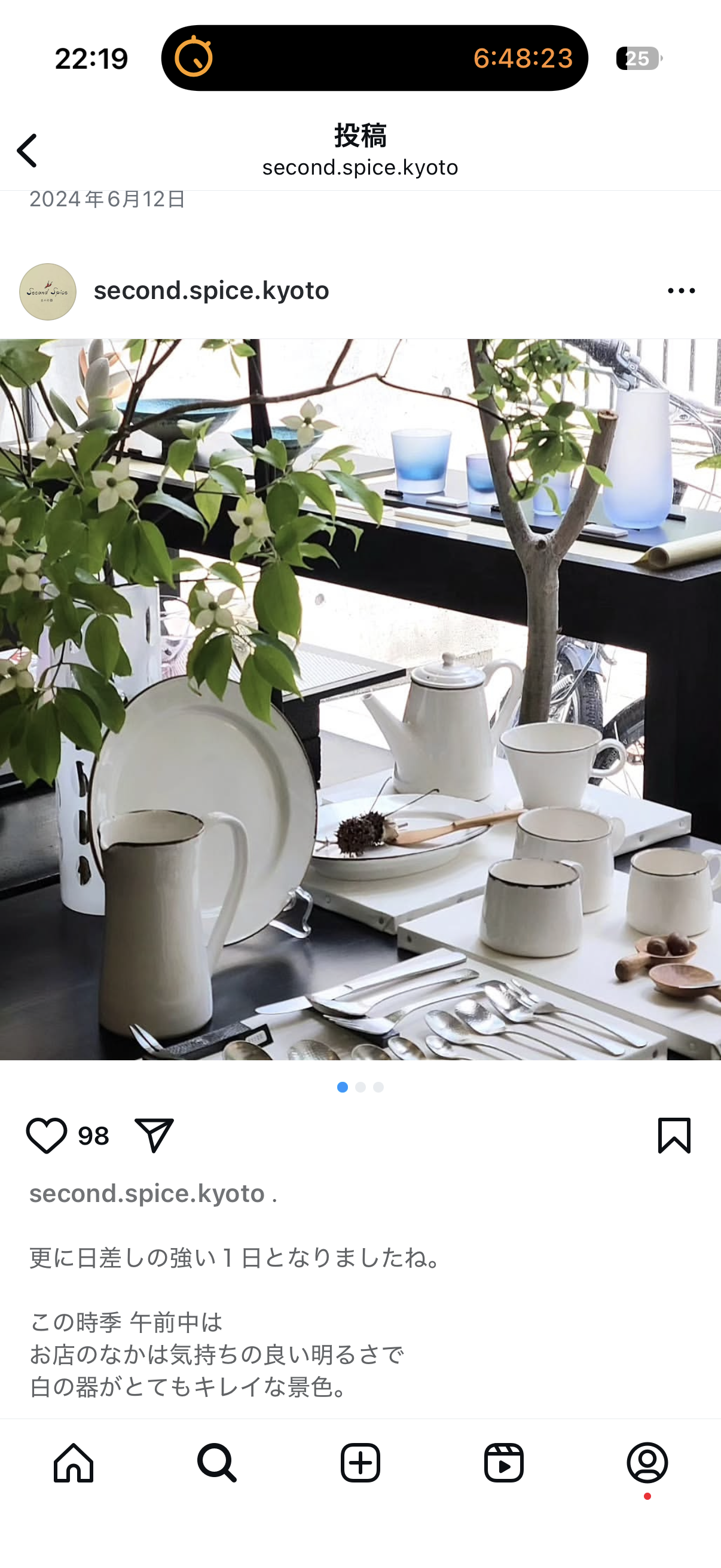 若林広幸の設計した京都毎日新聞の一階に器や(second spiceという変わった名前)がありふらりと入ると、気になる器が珍しく沢山あり、珍しく沢山買ってしまった。その後近くの食事屋さんに入ると、料理の器が素敵で、いいですねと伝えるとその器やのものだった。En la primera planta del edificio Mainichi Shimbun de Kioto, diseñado por Wakabayashi Hiroyuki, hay una tienda de vajillas (con el peculiar nombre de Second Spice). Cuando entré, vi muchísimas vajillas que me llamaron la atención y, curiosamente, terminé comprando muchas. Después, cuando fui a un restaurante cercano, la vajilla que usaban era preciosa, y cuando comenté lo bien que estaba, resultó ser de esa tienda. https://www.instagram.com/second.spice.kyoto?igsh=bWk3NnlhM3o2Njl6
