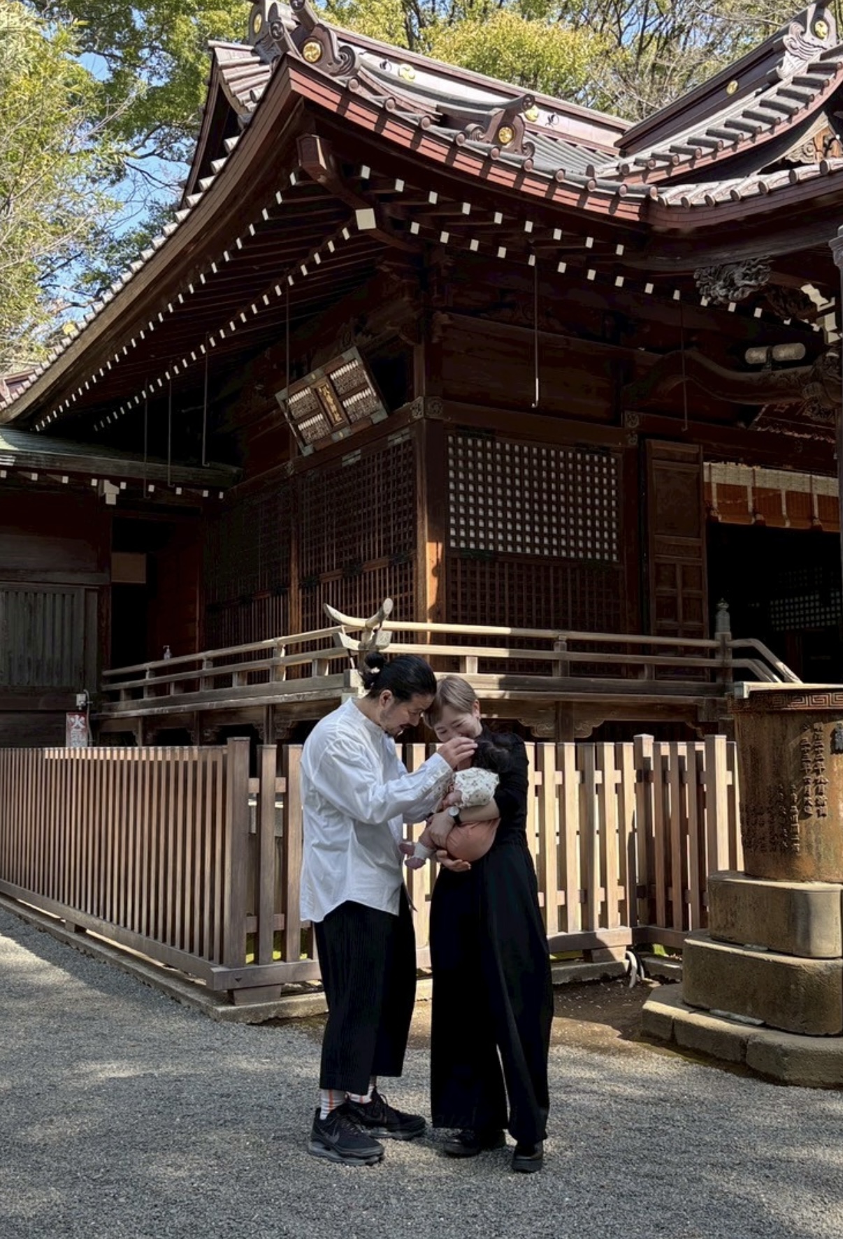 黒装束でお参り。Las familias Sakaushi y Tatani visitaron el santuario vestidas de negro.