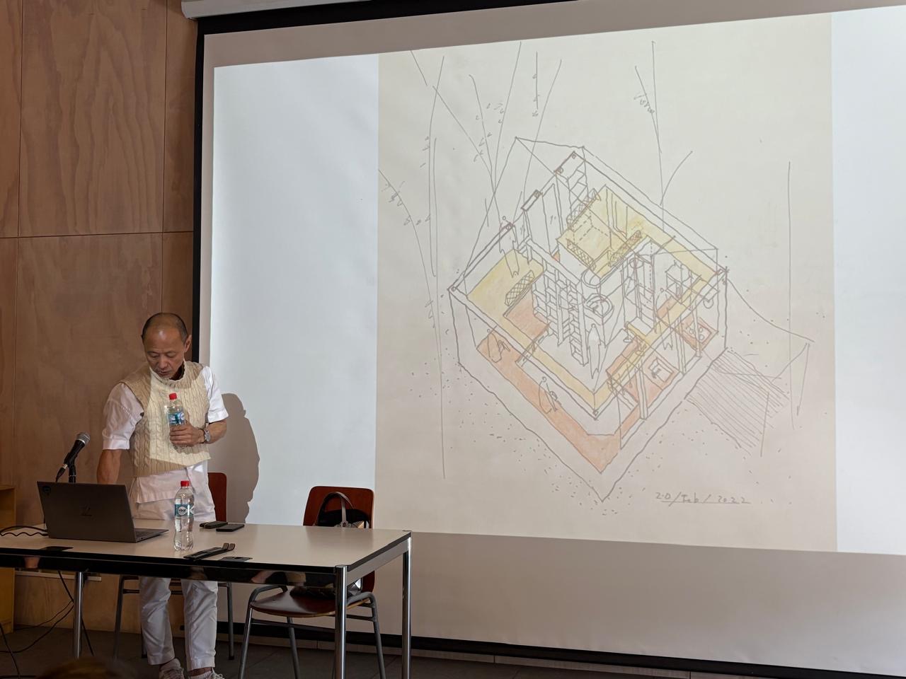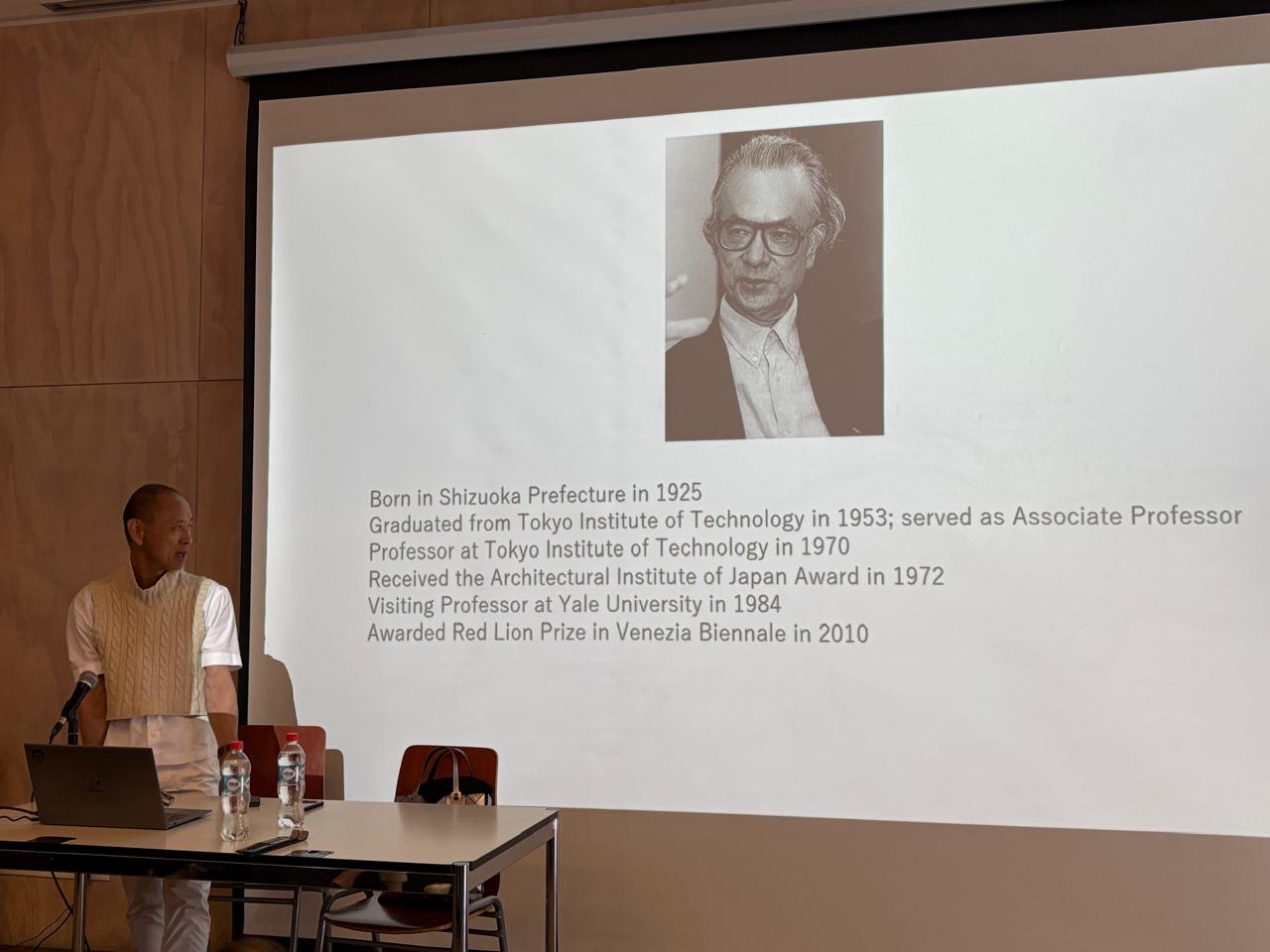 篠原一男とレクチャー50分、それについてディエゴ・グラスとダイアローグ30分。Conferencia de 50 minutos con Kazuo Shinohara, seguida de 30 minutos de diálogo con Diego Grass.