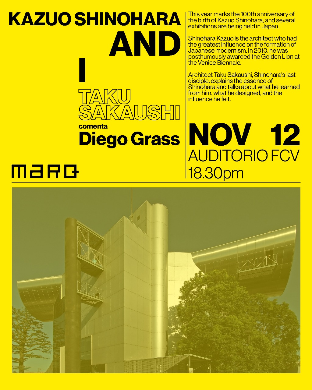 11/12チリカトリカ大篠原一男と私と題して話します。ふるってご参加ください。El 12 de noviembre, daré una charla en la Universidad Católica de Chile titulada "Kazuo Oshinohara y yo". Les invitamos a unirse.