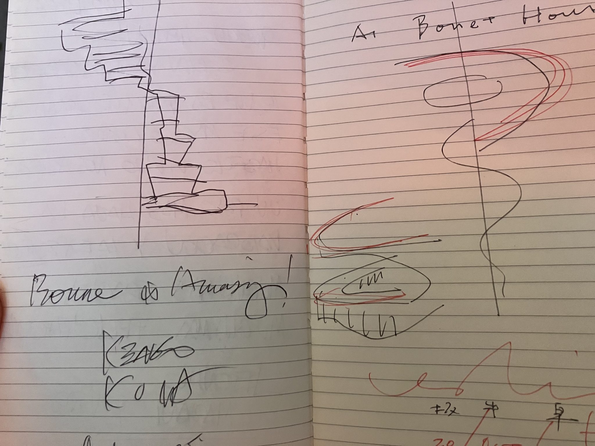 ボネットハウスの落書き帳をビスマンに渡され落書きしたら隣は有名な建築家の落書きだった。