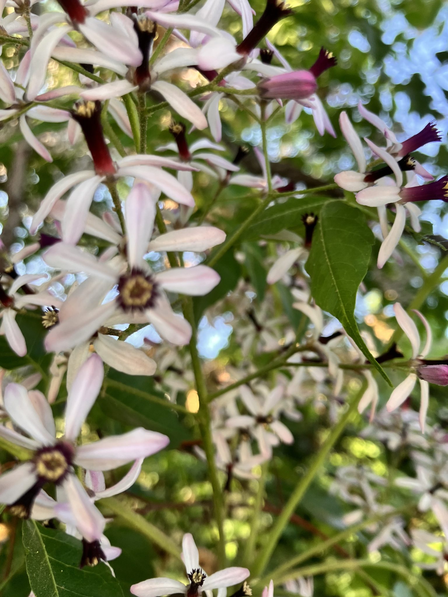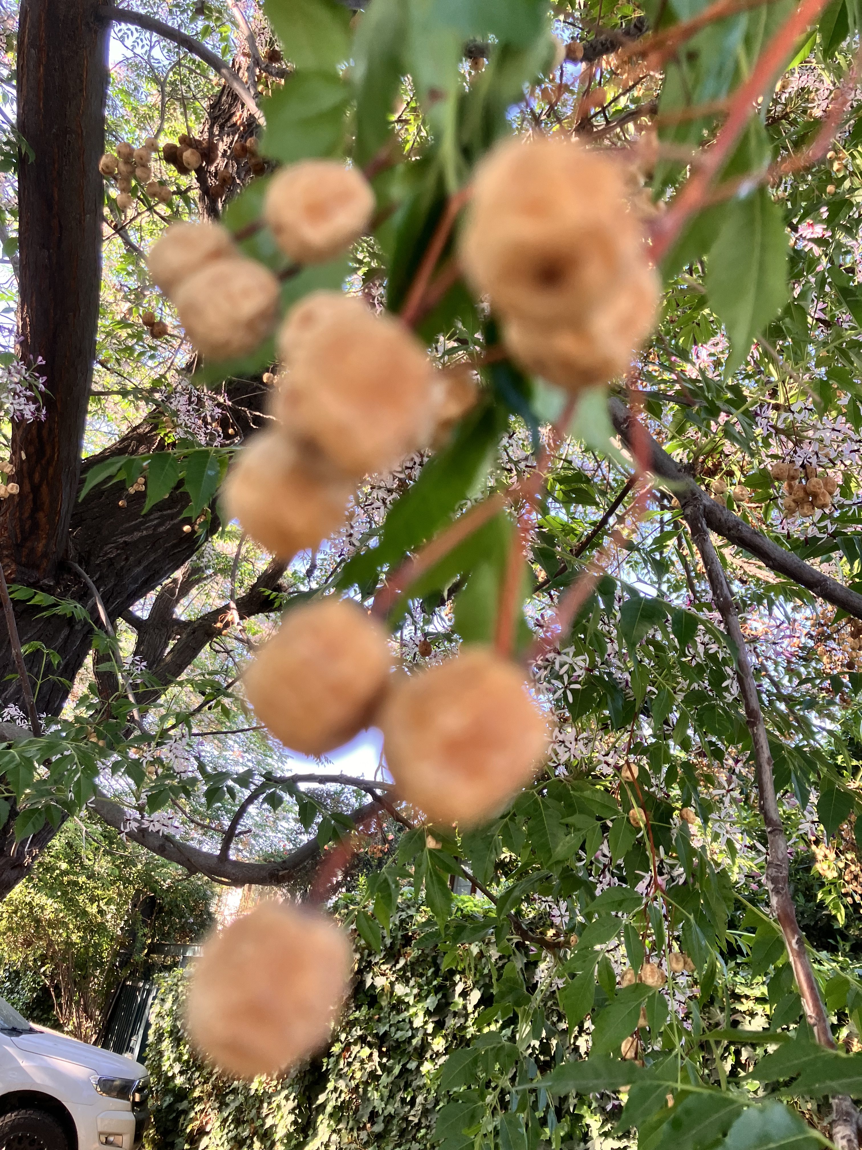 ペドロ•デ•バルデビアはプラタナスとセンダンの並木が美しい。センダンに花が咲くと初夏なのかな。Pedro de Valdevía es un hermoso lugar con hileras de plátanos y Melia Azedarach . Cuando los cedros empiezan a florecer, significa que es principios de verano.