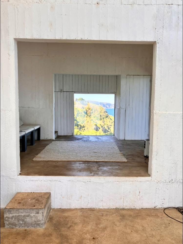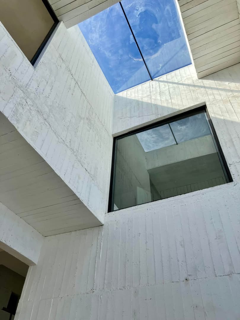 ペソ・フォン・エルリッヒスハウゼンのカサ・ポリは型枠を白く塗って内装仕上げにした。だから仕上げなのに目地幅はバラバラ表面はザラザラである。Casa Poli by Peso von Ellrichshausen was finished with an interior finish by painting the formwork white. Therefore, even though it is finished, the joint widths are uneven and the surface is rough.