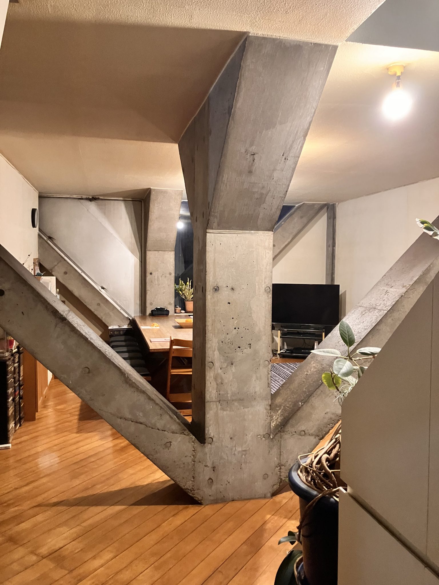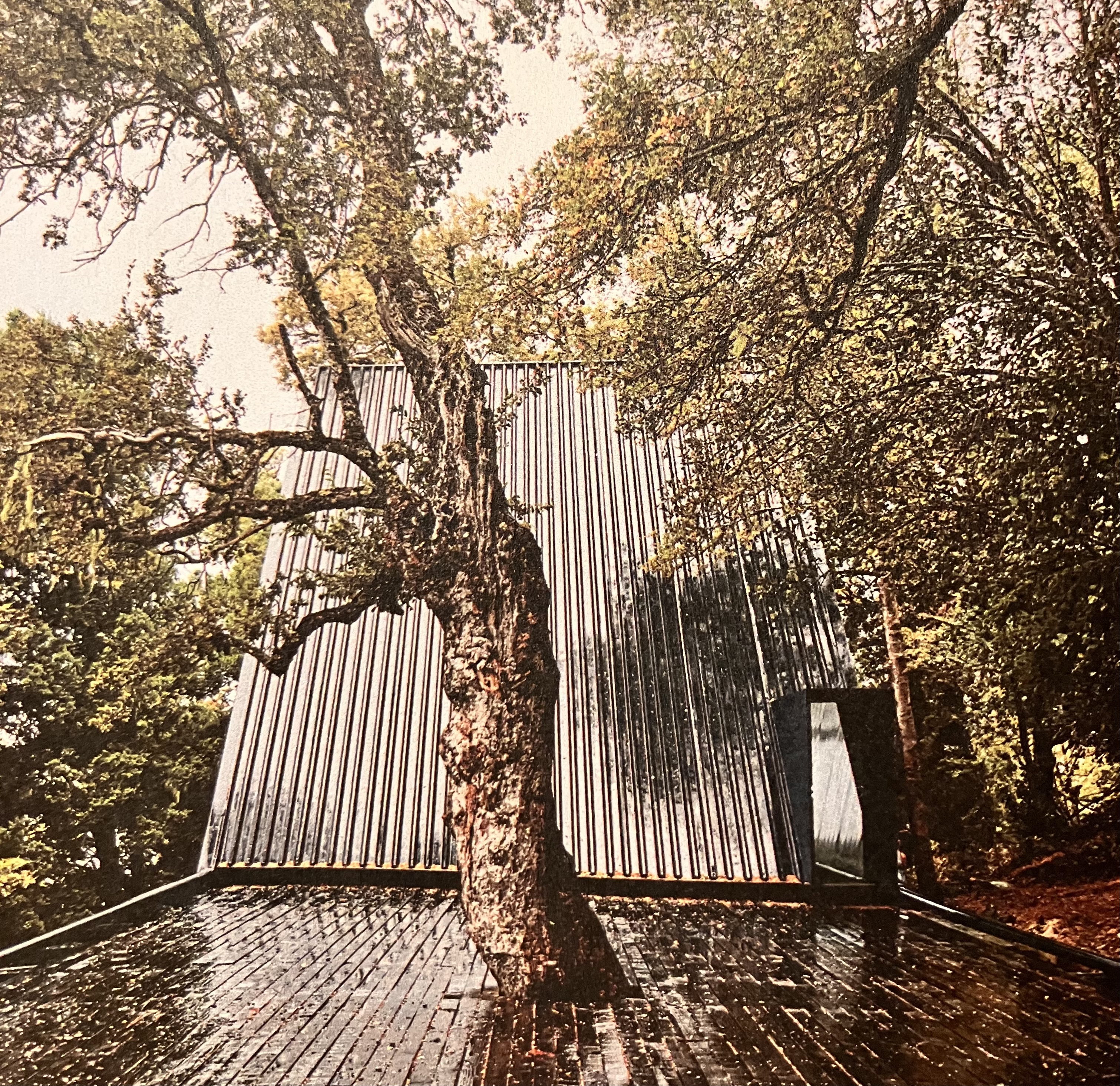 スミルハン・ラディッチは2018年に篠原一男の《直角三角柱》のヴォリュームを使ってチリ南部に住宅を作った。しかしその住宅の長辺は篠原の建物が10.8mあったのに対して7.2mと短くなっていた。つまりそれは7.2mの立方体を対角線で切断した形だ。さらにスミルハンは篠原の使用した内部の斜めの柱を「心地の悪い幾何学(unconfortable geometry)と呼び、しかしその構造が空間(形)を整えていると分析した。そしてその構造を模倣した。しかし篠原が閉鎖的に作った空間をスミルハンはジャイマ火山(llaima volcano)に向かって完全に開放した。スミルハンはこの行為を篠原の「解釈(interpretation)ではなくrepetition(反復)でありreplication(模倣)である」と言っている。西沢立衛が篠原の《から傘の家》の分析でこれは浄土寺浄土堂の模倣でありかつ篠原一男の表現である。つまり中道(middle path)である。その葛藤がこの建築の力だと書いていた。ラディッチの中にもそうした創るスタンスがあったのかもしれない。もし機会があったらそのことをを聞いてみたい。In 2018, Smiljan Radić built a house in southern Chile using the volume of Kazuo Shinohara's "Prism House" However, the long side of his new house was 7.2 meters, shorter than Shinohara's 10.8 meters. In other words, it was a 7.2-meter cube cut diagonally. Furthermore, Smiljan called Shinohara's use of diagonal columns "uncomfortable geometry," but analyzed that their structure orders the space (shape). He then imitated this structure. However, whereas Shinohara had created a closed-off space, Smiljan completely opened it up toward the Illaima Volcano. Smiljan described this act as "not an interpretation but a repetition and replication" by Shinohara. Ryue Nishizawa's analysis of Shinohara's "Umbrella House" shows that it is both an imitation of the Jodo-do Hall of Jodo-ji Temple and an expression of Kazuo Shinohara's work. In other words, it represents the middle path. He wrote that this conflict is the power of this architecture. Perhaps Radić also had a similar creative stance. If I have the opportunity, I would like to hear more about it.