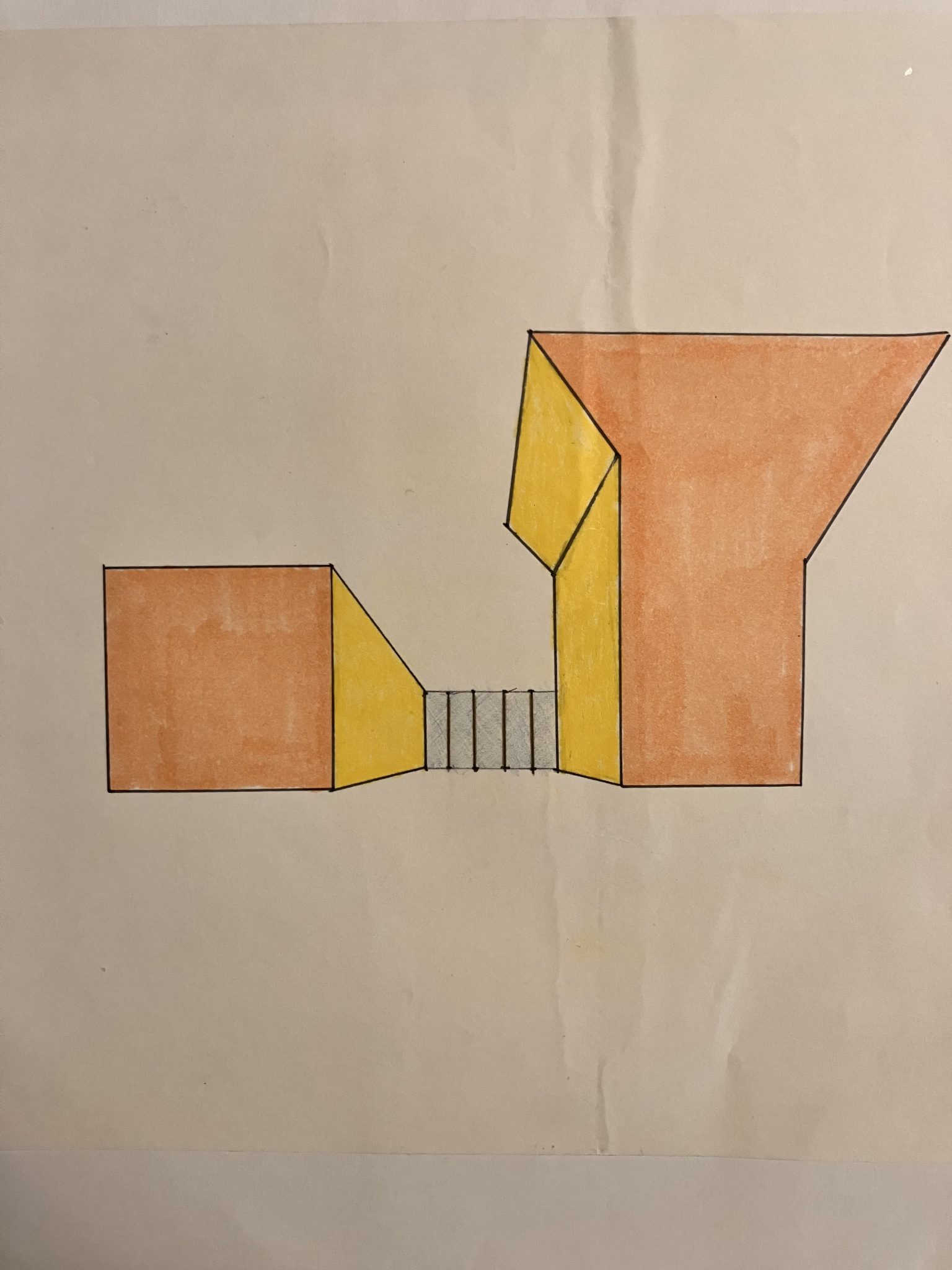 篠原一男モノグラフに100年記念館の私のスケッチを小さく載せる。しかしゲラを見たら白黒なので赤黒のスケッチは真っ黒になっていた。ファイルをひっくり返したら線画ができたので差し替える。当時敷地候補は二つあった。一つは現在立っているところ。もう一つは高い建物が建たない敷地でこのスケッチはそちらの敷地のための水平的な案である。I included a small sketch of my 100th Anniversary Memorial Hall in the Shinohara Kazuo Monograph. However, when I looked at the galley proofs, they were in black and white, so the red and black sketch had turned completely black. I flipped the file over and found the line drawing, so I replaced it. At the time, there were two possible sites. One was where the building currently stands. The other was a site where no tall buildings could be built, and this sketch is a horizontal proposal for that site.