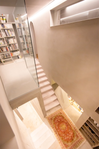 「流れと淀み」は建築の自律的要素として形態操作を牽引する。同時に建築に外在する要素としての光、風、音、自然、人、物、動物などの動きに導かれる。つまり建築の自律性と他律性を架橋し得る有効な概念装置である。前作坂牛邸(運動と風景)では建物の中心に上下する階段を織り込み。住人の運動(流れ)を前景化した。またこの流れは神楽坂という町の坂の侵入とも読める。そしてそんな流れは建物内では流れるだけではなく流れから外れた淀んだスペースにも連続する。
